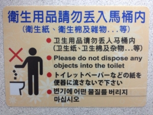 画像引用:國際機場廁所標語~衛生用品請勿丟入馬桶內